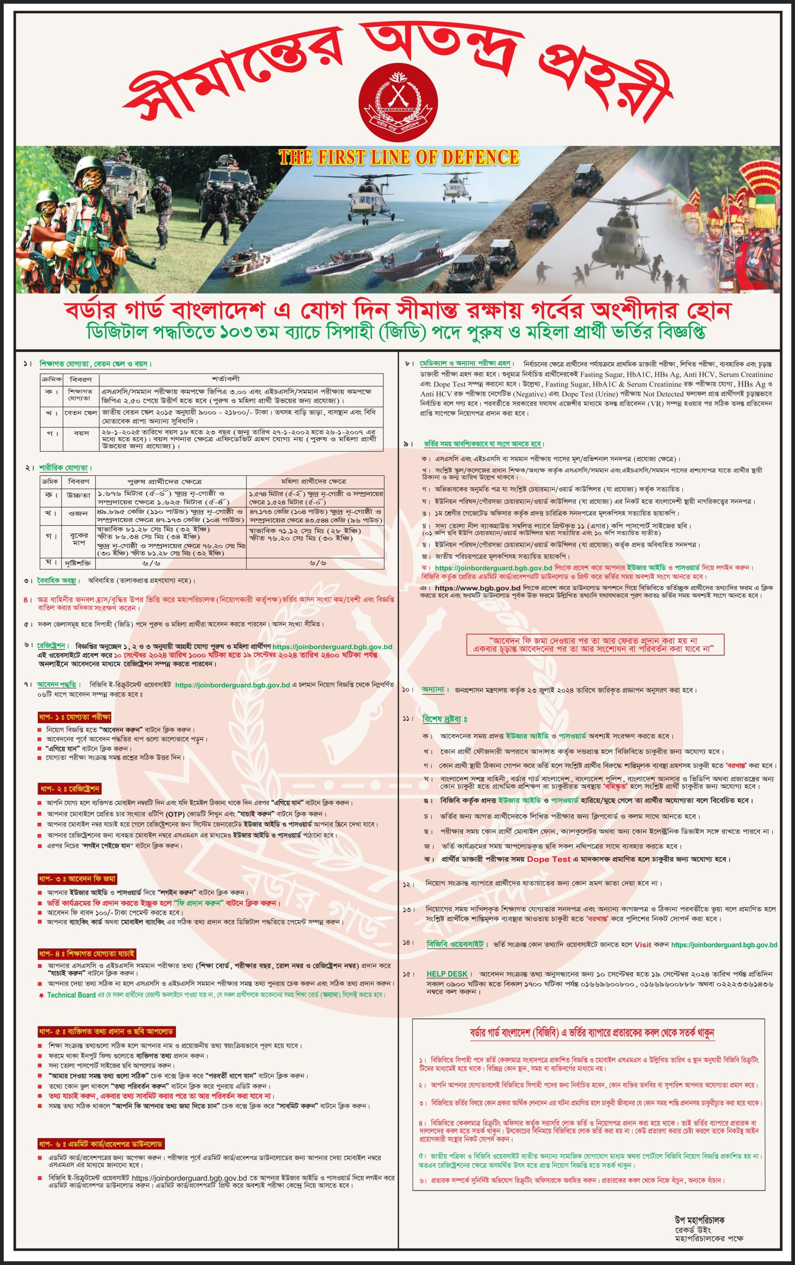 বর্ডার গার্ড বাংলাদেশে যোগ দিন ; সীমান্ত রক্ষায় গর্বের অংশীদার হোন।